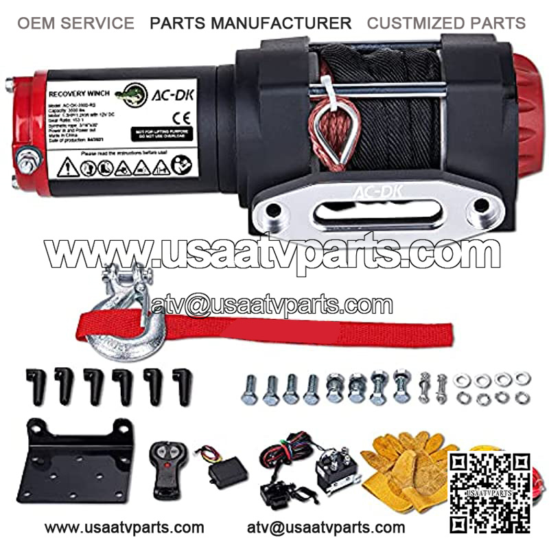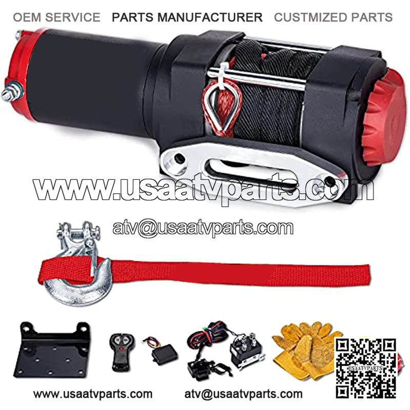 ?Item: 12V 3500lb Electric Winch Kits, ATV/UTV Winch with 49ft Red Synthetic Winch Rope,for Towing SUV Off Road with Mounting Bracket Wireless Remote Control