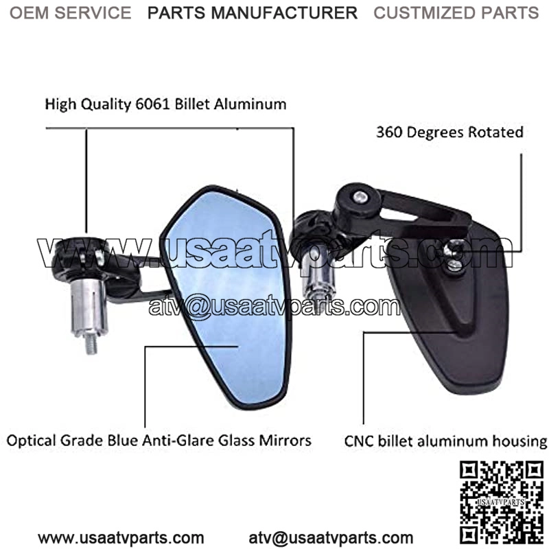 ??Materials??CNC Billet Aluminum with Vibration Resistant Housing, Optical Grade Blue Anti-Glare Glass Mirrors, it is shockproof and corrosion