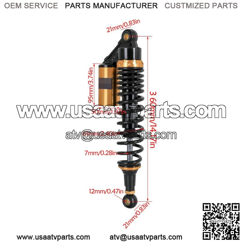360mm 14″ Rear Air Shock Absorber Suspension For Go Kart ATV Quad Dirt Bike Pit