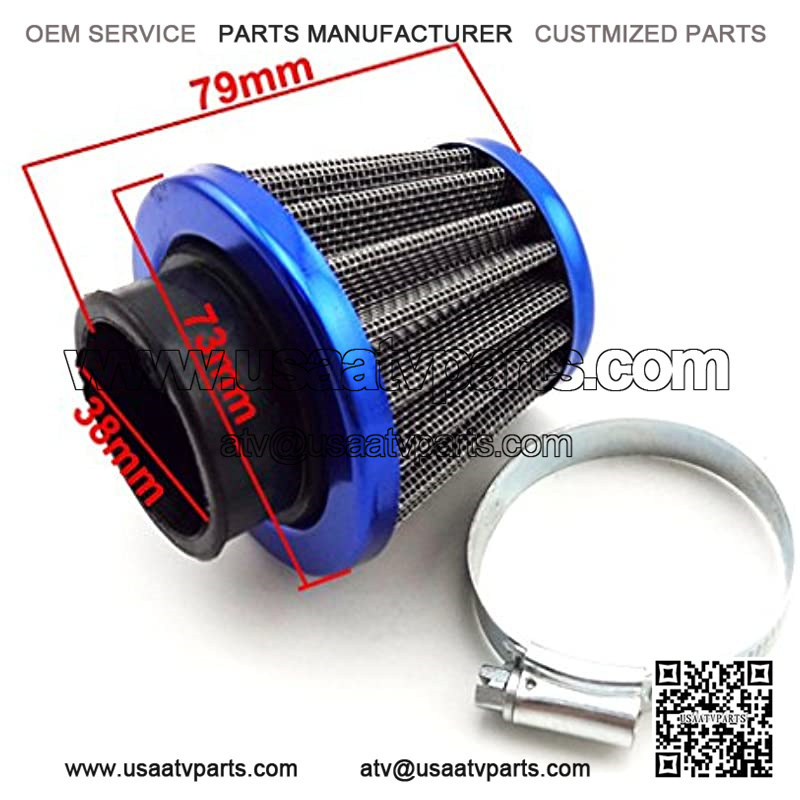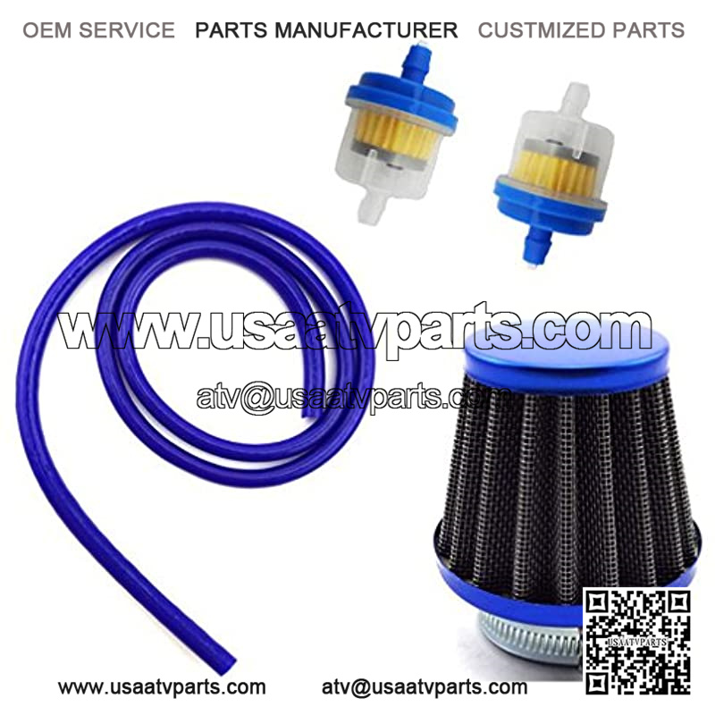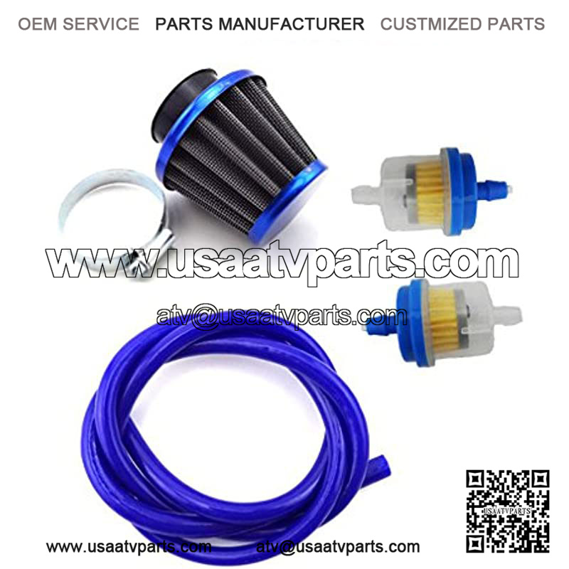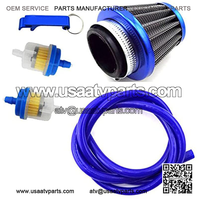 38mm Air Filter Cleaner + 5mm 1 Meter Fuel Hose Line + Fuel Filter For 50cc 70cc 90cc 110cc 125cc Pit Dirt Bike ATV Quad & GY6 50cc QMB139 Engine Moped Scooter (Blue)