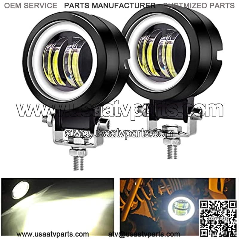 3inch LED Motorcycle Driving Lights 60W 6000K Auxiliary Spotlights with DRL/Angel Eye Off Road Light Pod 6000lm LED Fog Work Light for Motorcycle Truck SUV UTV ATV Tractor, 2Pcs