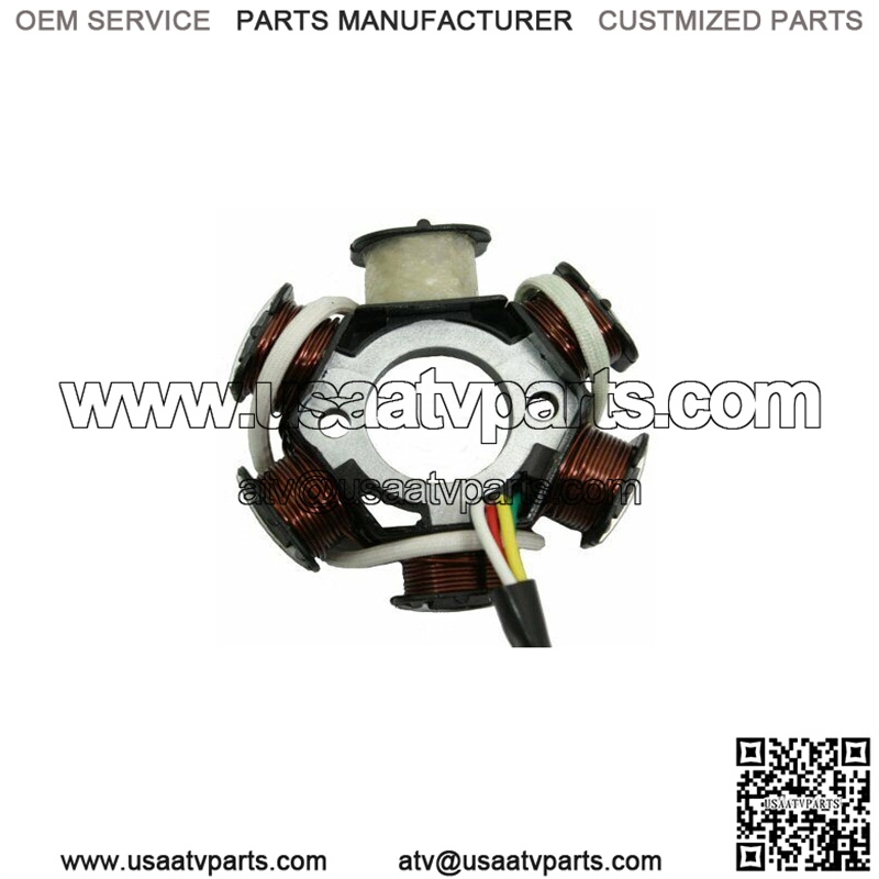 Item Description4-stroke stator assembly for Honda style 50cc-125cc horizontal motors commonly found on dirt bikes, ATVs, mini choppers and pocket bikes.Bolt Hole Spacing: 41mmFemale Plug StyleInner Diameter: 29mmOuter Diameter: 83mm6 Coil Stator