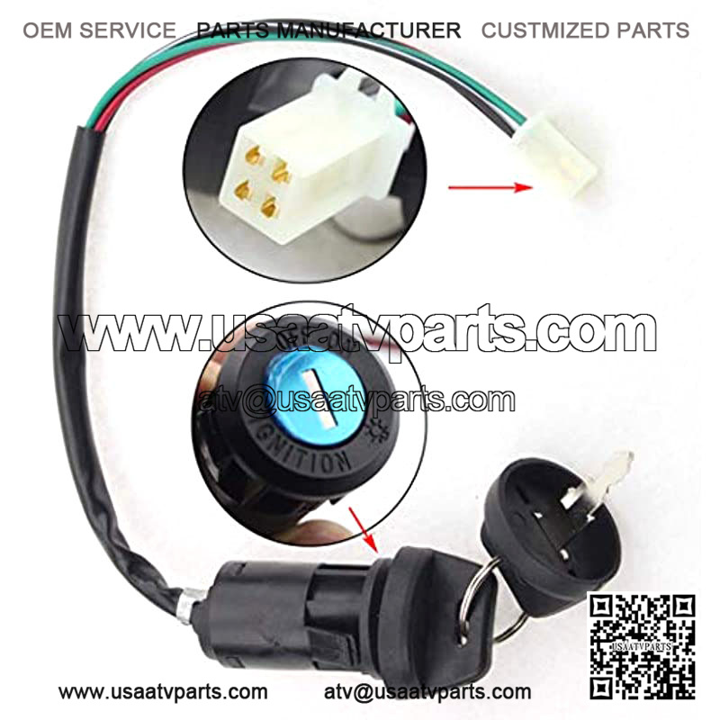 4 Wires Ignition Switch Key with Cap for 50cc 70cc 90cc 110cc 125cc 150cc 200cc 250cc ATV Dirt Bike .