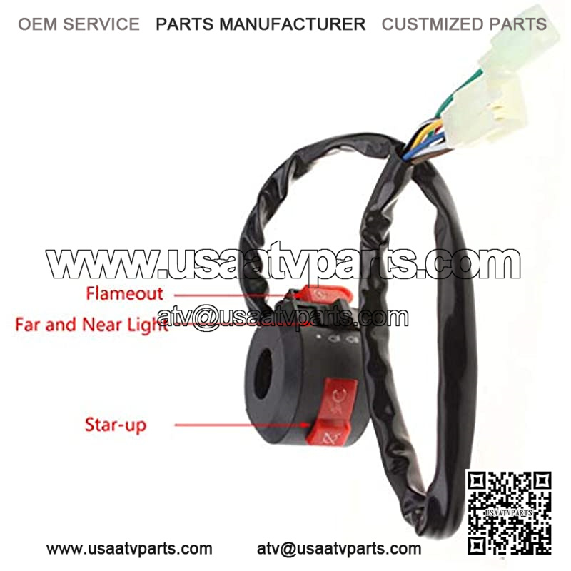 Left starter Switch Assembly?fits for 50cc 70cc 90cc 110cc 125cc 150cc engine ATVs Dirt Bikes Go Karts Quad Bikes Pit Bikes Trail Bikes Off Road Motorcycle. 8 pin 2 male plug,3 function,handlebar grips size:7/8”.