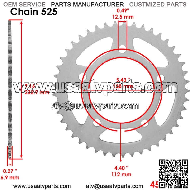 41201-MBW-670 41201MBW670 Rear Wheel Chain Sprocket for 45 Teeth
