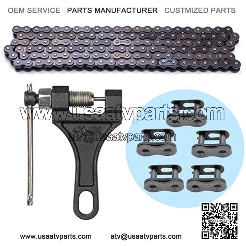 ? Premium Quality: made of alloy steel, heavy duty and long durabiltiy. ? Specifications: Chain No.: 420; Pitch: 1/2″; Roller Width: 1/4″; Roller Diameter: 5/16″; Sprocket Thickness: 0.227″. ? Links can be removed to fit virtually any application, like 50cc 70cc 90cc 110cc 125cc ATVs and dirt bikes, Go Kart, Mini Bike, Scooter, Pit Bike, Quad, etc. ? Package including 1pcs roller chain and 1pcs chain breaker.