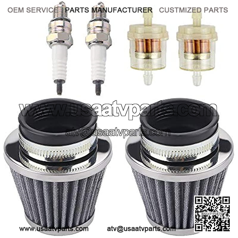 Package include: 2x air filter + 2x spark plug + 2x fuel filter