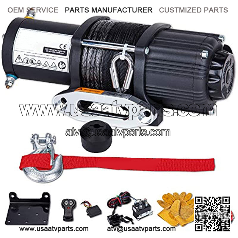 4500 lb. Electric Synthetic Rope ATV/UTV Winch Kits, DC 12V Wireless Winch for Towing Off Road Trailer Winch with Wireless Remote Control, Winch Mounting Bracket, Winch Rope Stopper