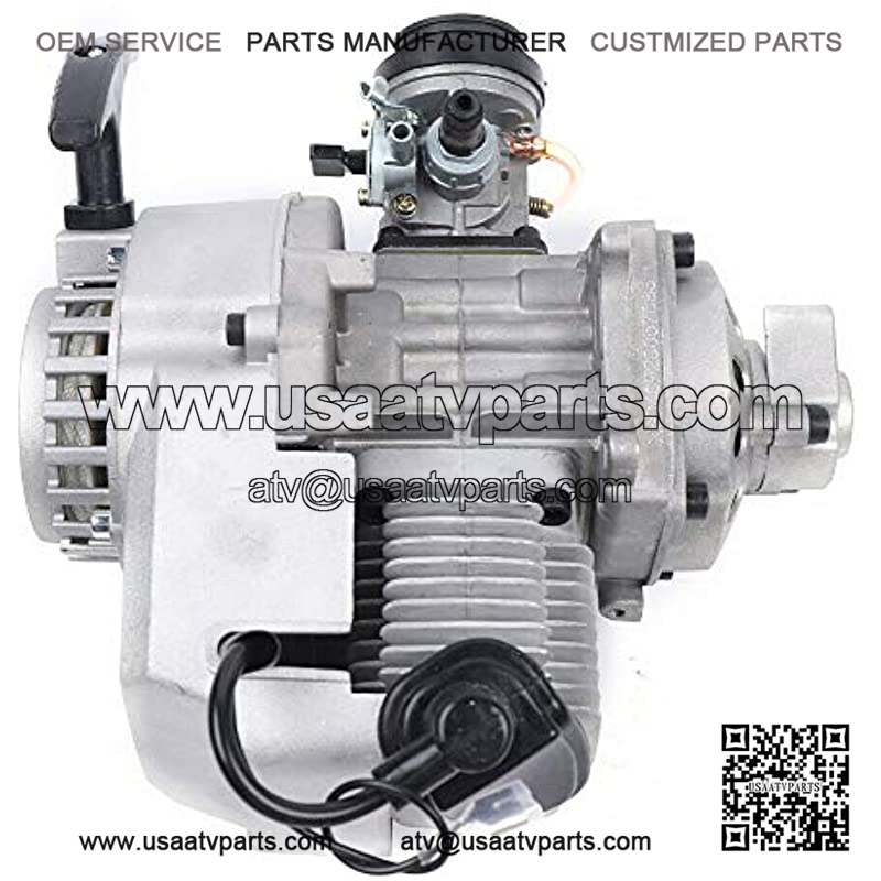 ?Complete 49CC 2 Stroke Engine??: Cooling: Air forced cooling, Start Way: Recoil pull start??new style recoil,easy to pull start, Recoil Starter Material: New style easy pull starter, Application: for most air cooled Mini Dirt Bikes