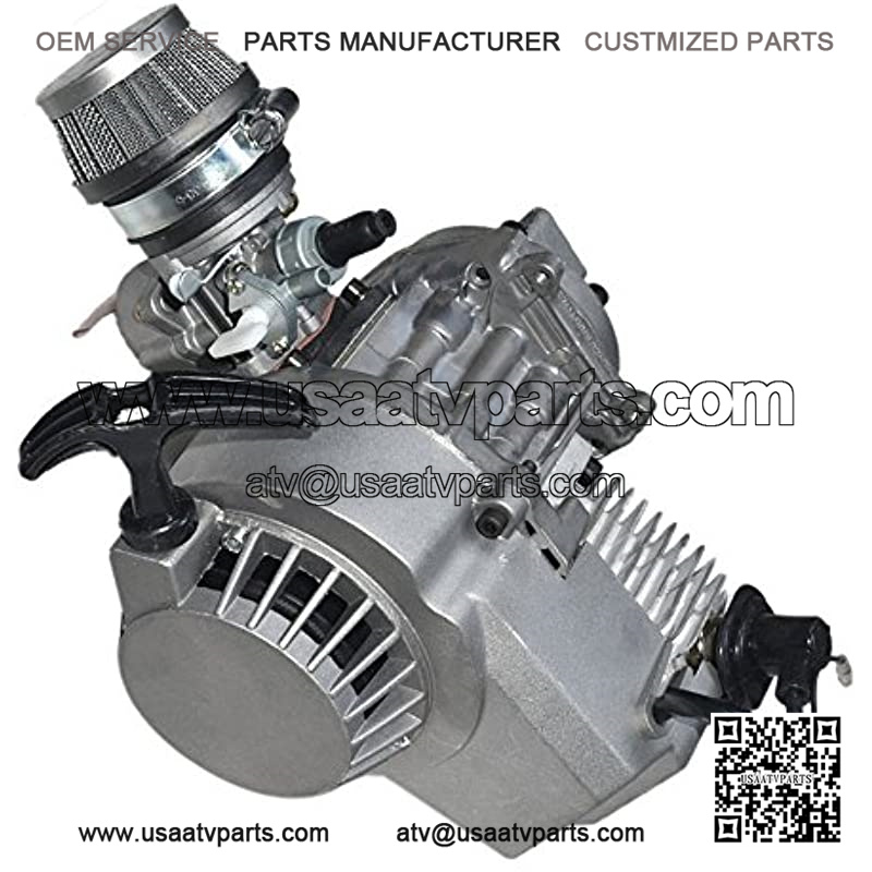 Complete assembled 49cc 2 Stroke Engine for pocket bike, mini dirt bikes atvs.Oil fuel ratio: 1:25 (use 2T oil)