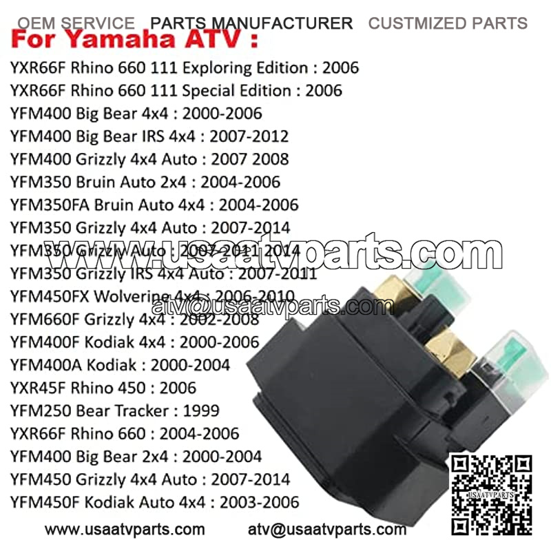 ??FIT FOR??Starter Solenoid For Yamaha ATV YFM660F Grizzly 2002-2008 /YFM450 Grizzly 2007-2014 /YFM400 Grizzly 2007 2008 /YFM350 Grizzly 2007-2014 ***YFM400 Big Bear 2000-2012 ***YFM350 Bruin 2004-2006 ***YFM450FX Wolverine 2006-2010 ***YFM450 Kodiak 2003-2006 /YFM400 Kodiak 2000-2006 ***YXR66F Rhino 660 2004-2006 /YXR45F Rhino 450 2006 ***YFM250 Bear Tracker 1999