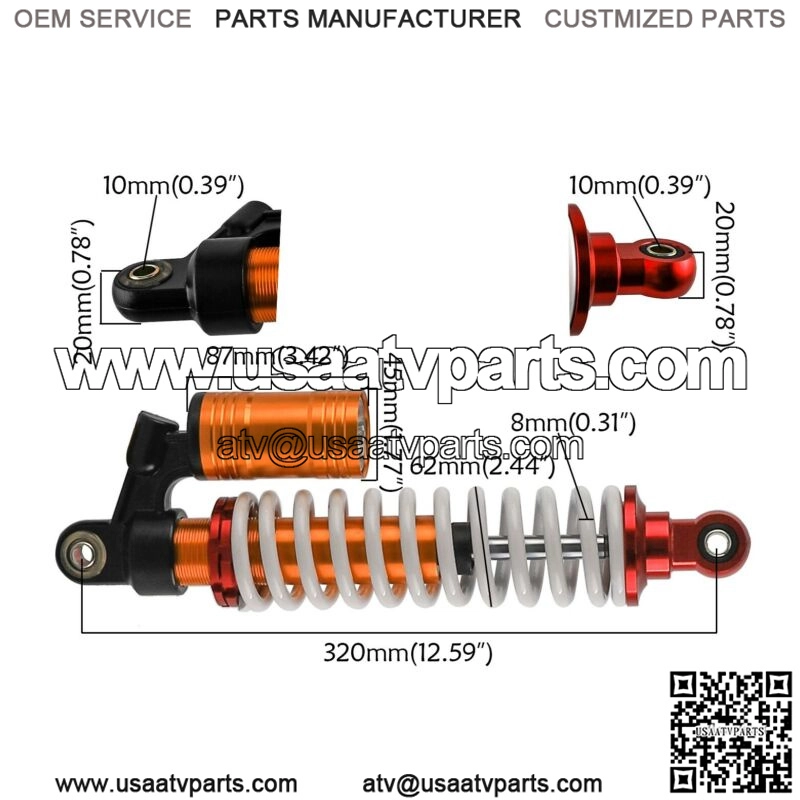 4x 320mm 12.5″ Front Shock Absorber for ATV QUAD Go Kart Dirt Pit Bike 800lbs