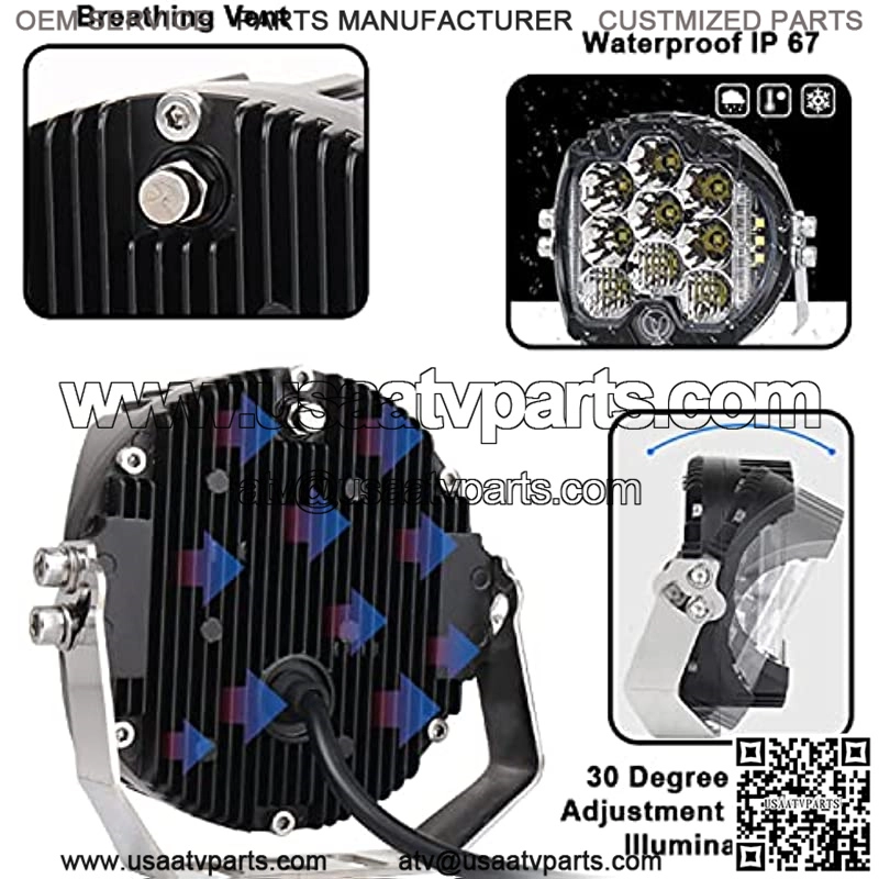 5 Inch round led light with 50W high intensity LED chips, provide unprecedented greater visibility, farther lighting distance and high energy efficiency and stability.50W round LED driving light with IP67 grade, anti-corrosion, durable for heavy rain and any harsh conditions. Replace HID or Xenon Light directly.Operating Voltage: DC 9-32V. Color Temperature: 6000k Pure White. Beam Angle: Flood Beam & Spot combo Size (without bracket)Round Led light bar has a long service life. Special design aluminum alloy heat sinks effectively extend the lifespan to over 50,000 hours.Wide application for 5 inch driving light: Perfect for off-road cars, compatible with almost all Jeeps, 4×4, Cars, Trucks, Motorcycles, SUVs, ATVs, Boats, etc. Many indoor and outdoor uses: garden lighting, backyard lighting, back-up light, off road Lighting, construction Lighting and so onAbout usGzminjie designs and manufactures one of the best high quality led light bar in the world. We stand behind our products and s