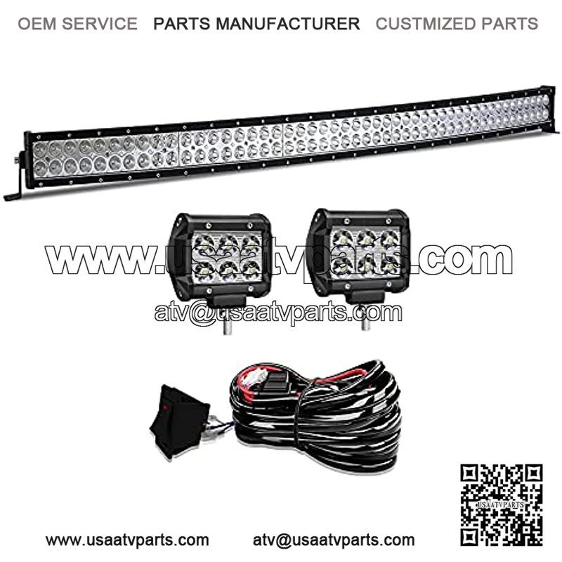 50″ LED Light Bar T-Former Curved 288W Light Bars Off Road Lights 2Pc 4Inch Led Pods Fog Lights with Rocker Switch Harness Wiring for Trucks Polaris ATV UTV Jeep Boats