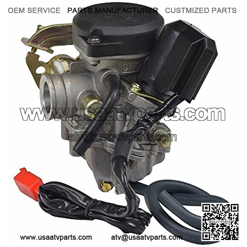 This CVK-style 50cc scooter carburetor made by Keihin is designed specifically for 50cc QMB139 4-stroke scooter, ATV, and dirt bike engines. This carburetor is equipped with an electric choke.