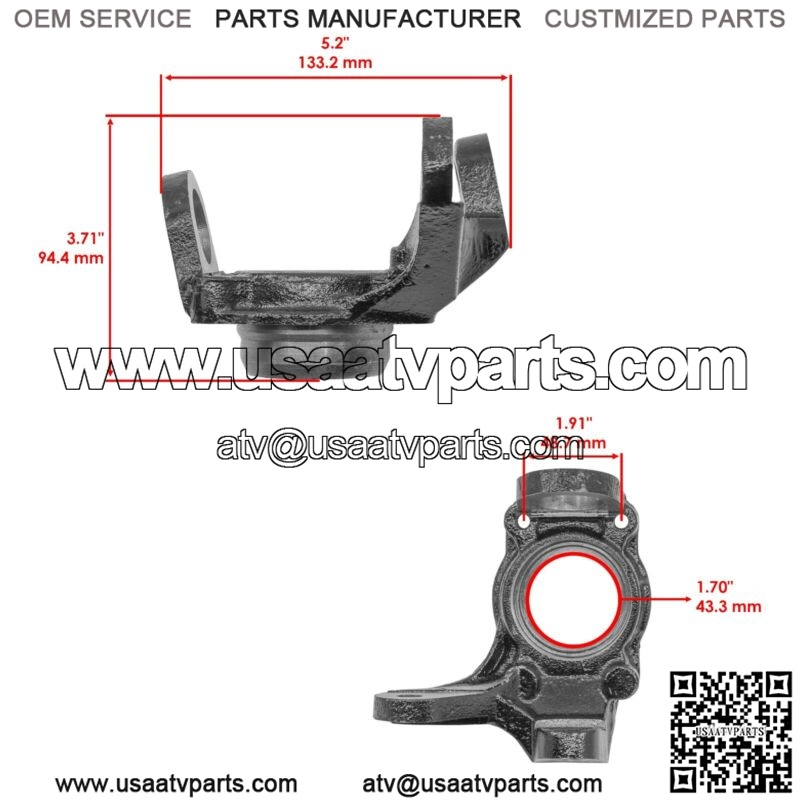 1 x Knuckle | 51200-HM5-A80 51200-HM5-850 51200-HM5-930Height : 94.4mm | 3.71″Length : 133.2mm | 5.2″Inner Diameter : 43.3mm | 1.70″Mounting Hole Distance : 48.7mm | 1.91″
