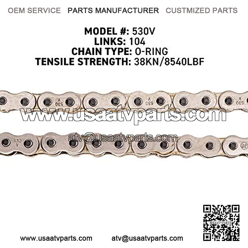 High-Performance O-Ring Drive Chain | 530 Pitch | 104 Links | NBR O-Rings | Master Link – Clip for Easy Install | Tensile Strength 38 KN or 8540 lbf