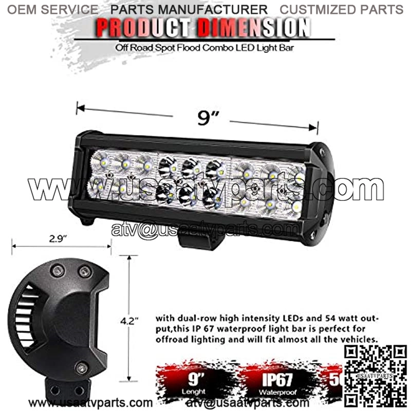 54W Led Light Bar 9 inch 12V Led Light Spot Flood Combo Work Light Bar Daytime Driving Lights Fog Lights For ATV UTV Jeep Offroad Truck Golf Cart Boat
