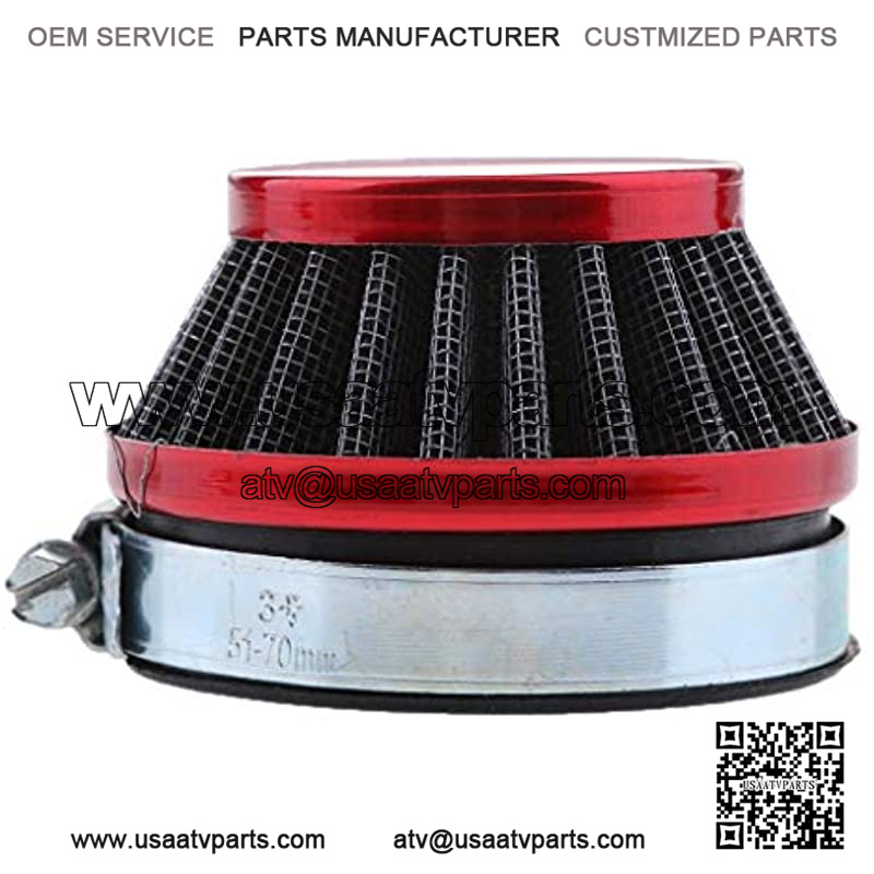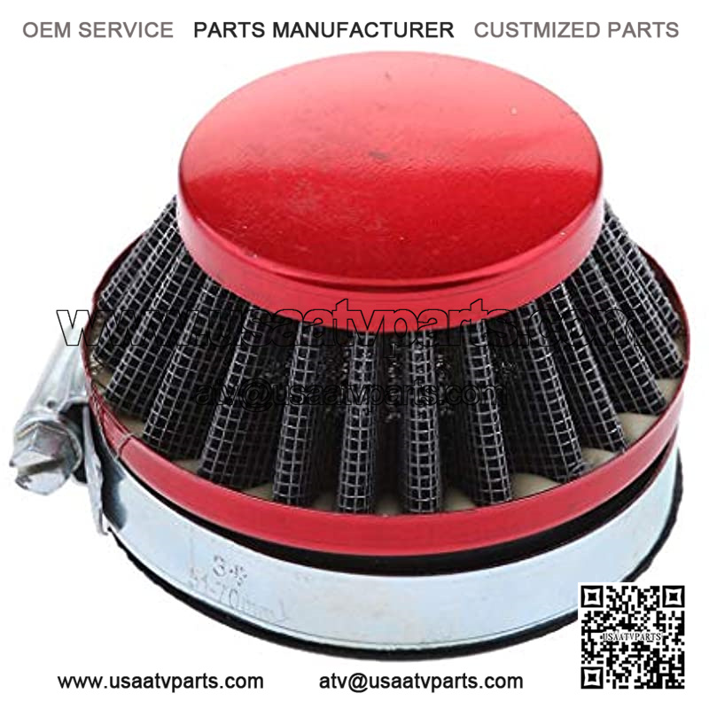 – 100% brand new and high qualiy. – 58mm Performance Cone Air Filter with a Coupler. – Air Filter manufactured in chrome housing and comes with a red film protection that needs to be peeled off before use. – Designed for most carburetors requiring a 58mm (2.28in) inside diameter opening. – Fitment: for small engines 49cc-80cc 2-strokes,ATV,Dirt Motorcycle ,Motorized , Bike,Scooter,Moped,Go-Kart.Also fits MTA4 39cc water cooled 2-stroke mini bike.