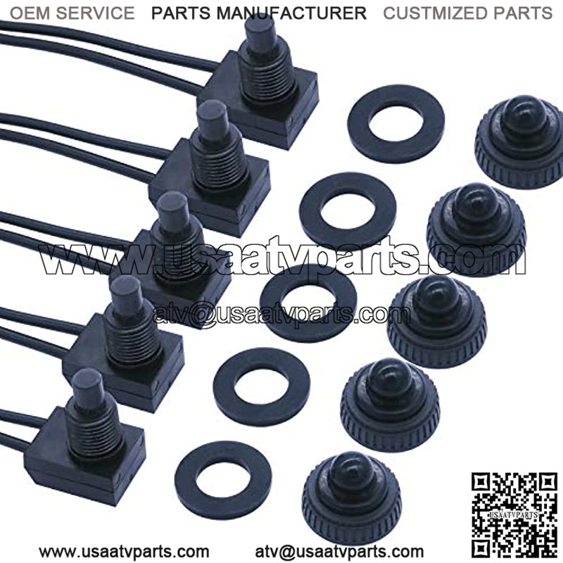 5pcs 12V Waterproof Push Button Switch Wired SPST On-Off Switches Black, Use for RV Motorcycle/Car MXU-kp-107