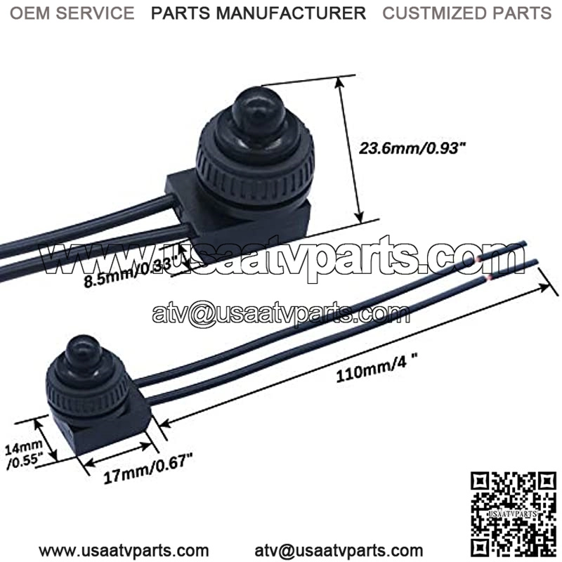 1.Waterproof Push Button Switch with Black Rubber Boot features 18 AWG 4.50 inch wire leads with 0.25 inch stripped end lengths.
