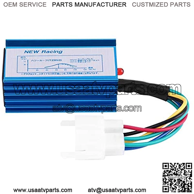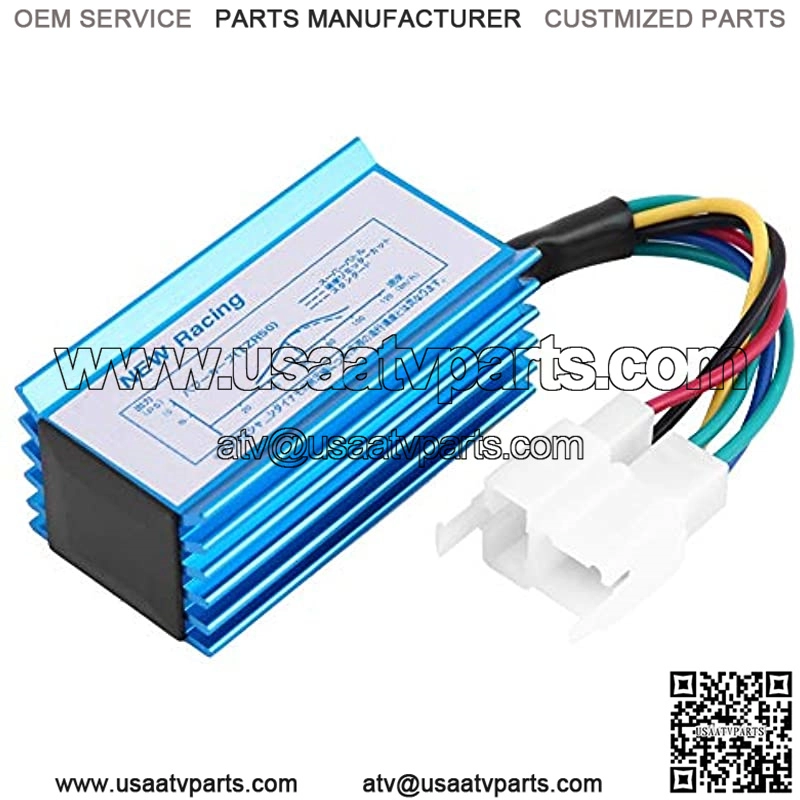 [Connector]: 6 Pin male plug (2+4 Pin); Alternating Current (AC) [Connector]: 6 Pin male plug (2+4 Pin); Alternating Current (AC) [6 Pins CDI Box]: This cdi igniter module box help increase ignition energy for easy starting and smooth riding [Features]: Eliminate rev-limit which keeps your bike restricted and also reset your ignition advance curve for better acceleration; It will give you 5-10 miles speed boost on your bike [Widely Application]: The 6pin scooter cdi box fit for 125cc 150cc 200cc 250cc ATV dirt bike go kart 4 wheeler quad bikes motorcycle [Easy Installation]: This 6pin scooter cdi box is easy to install, just plug and play