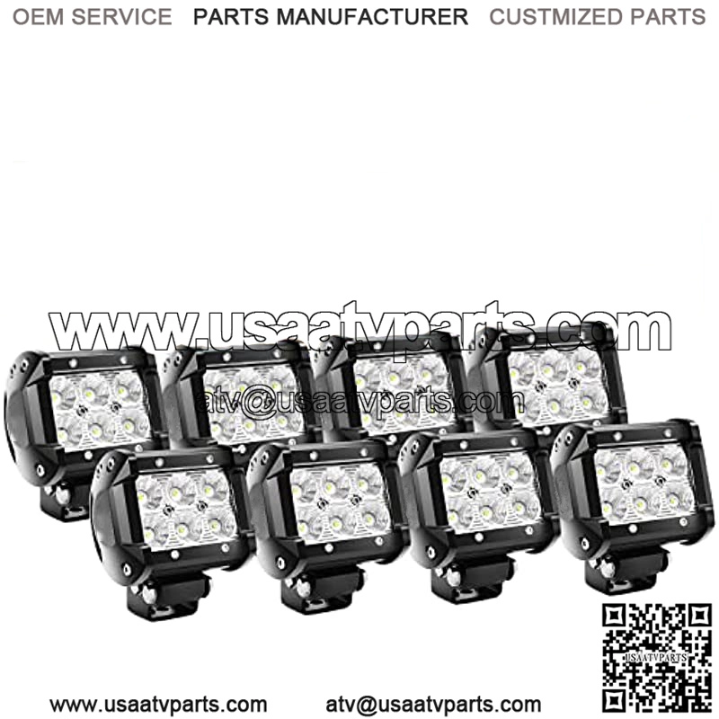 Super bright flood beam: high-quality LED chips Emits bright white light; flood beam for wide illumination rangeBetter heat disation: die-cast aluminum alloy cooling fins effectively extend the lifespan to over 30, 000 hoursAdjustable mounting bracket: the pod can be adjusted to about 45 degrees, which makes changing direction of light beam easierWaterproof rate: IP67; waterproof up to 3. 3 feet of water for 30 minutes and effectively dustproofPackage Includes: 8Pcs 18W LED light bars and mounting bracketsProduct DescriptionSpecification: LED Power: 18W (6 x 3W High Intensity LED) Beam Pattern: Flood Beam; Lumen: 1260LM Input Voltage: 9-30V DC (fits 12V, 24V vehicles) Working Lifespan: Over 30,000 hours Working Temperature: -40~85 degrees Celsius LED Color Temperature: Pure White 6000K-6500K Material: 6063 Aluminum Profile, High quality Led Chips, PC Lens Waterproof Rate: IP67; Waterproof, dustproof, quakeproof and anti-corrosive. Certifications: CE, FCC and RoHS Applications: Off