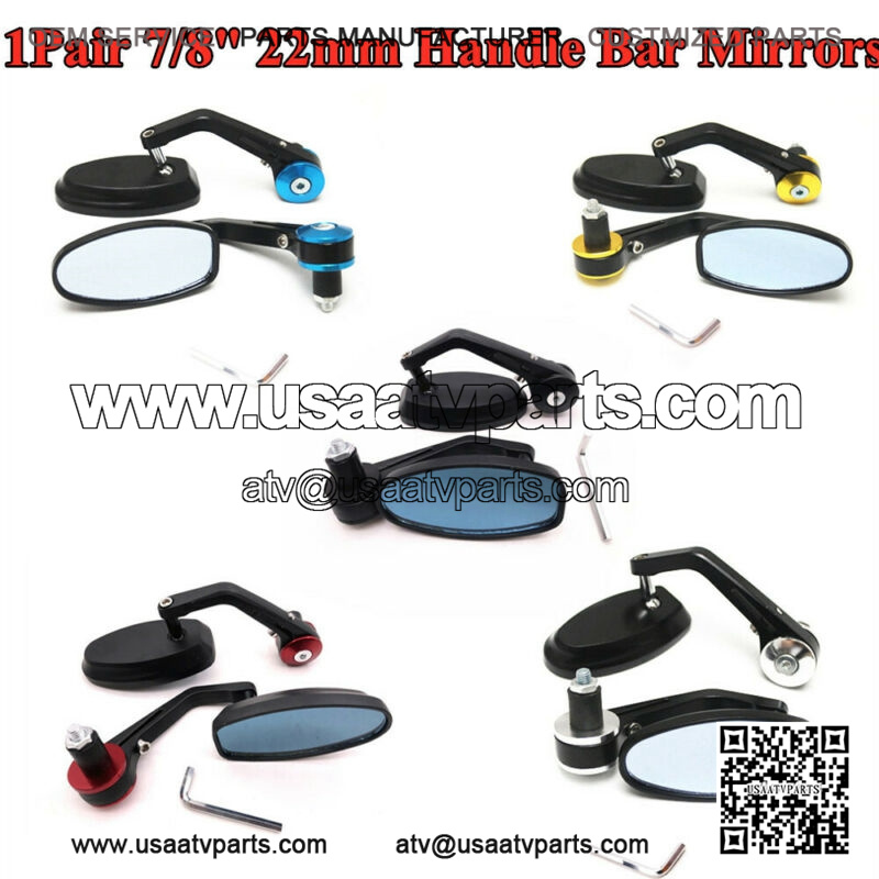 7/8″ 22mm Motorcycle ATV Scooter Handle Bar End Rearview Side Mirrors