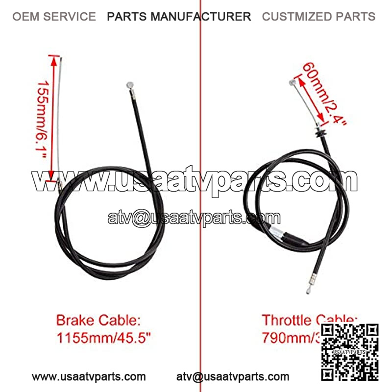 ?SIZE??Handlebar installation diameter:22mm/0.87″,Brake lever length:120mm/4.7″;Brake cable length:1155mm/45.5″??Including moving length??;Cable moving length:155mm/6.1″;Throttle cable length:790mm/31.1″??Including moving length??;Cable moving length:60mm/2.4″;(As the picture shows)