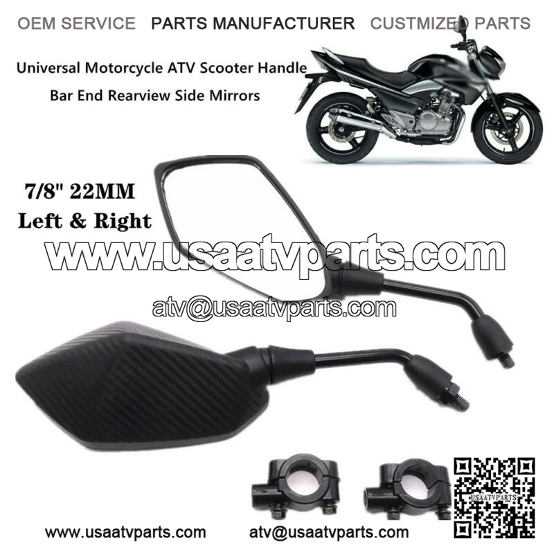 7/8″ L&R Motorcycle ATV Scooter Universal Handle Bar End Rearview Side Mirrors