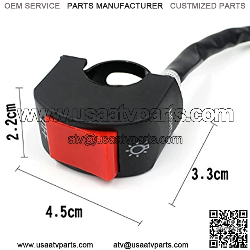 The item is a professional and practical motorcycle ON/OFF button switch , which can be installed on most of motorcycles, and can be used on motorcycles, ATVs, scooters, or snowmobiles. It can act as a ON/OFF switch for headlight, hazard light,engine stop etc.