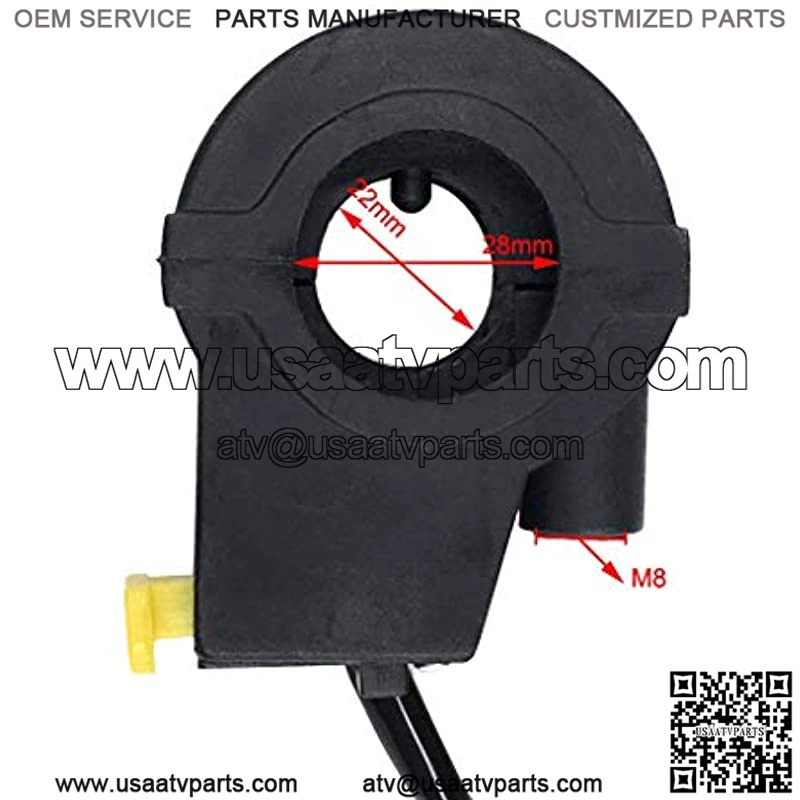 Handlebar mounted for 22mm (7/8″) bars, universal fits on most ATVs, bikes, scooters or motorcycles