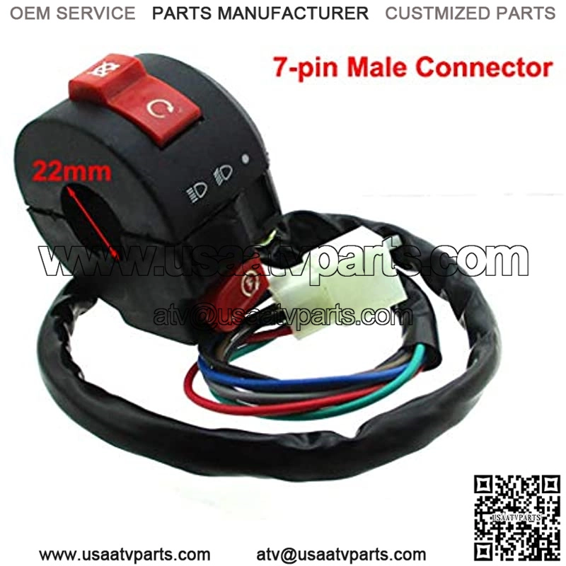 Fitment: 7-pin Male Kill Starter Light Switch Assembly Without The Choke Lever Fits 7/8″ Handlebar For Sunl Roketa Coolster 50cc 70cc 110cc 125cc ATV Quad