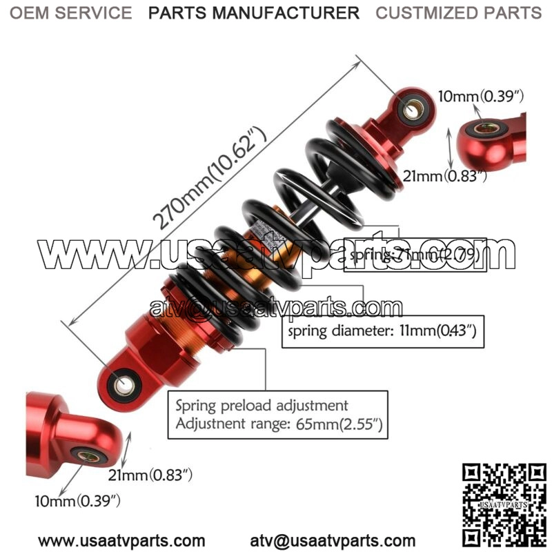 800lbs 270mm 10.5″ Rear Shock Absorber for Dirt Pit Bike ATV Quad SSR 110CC 125
