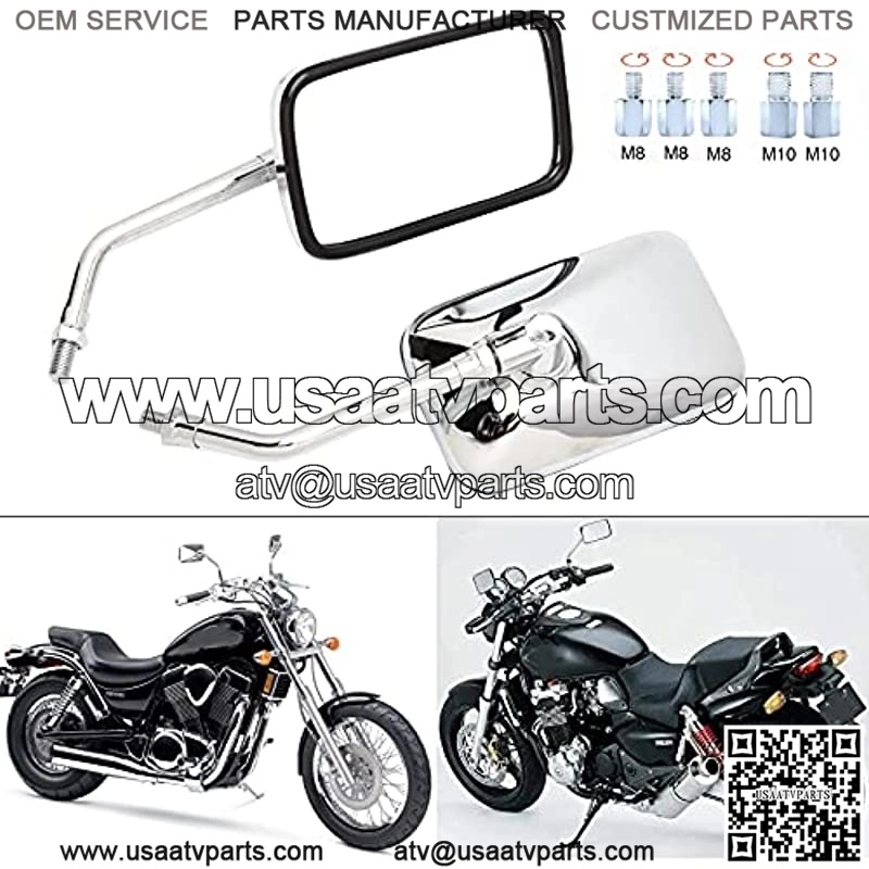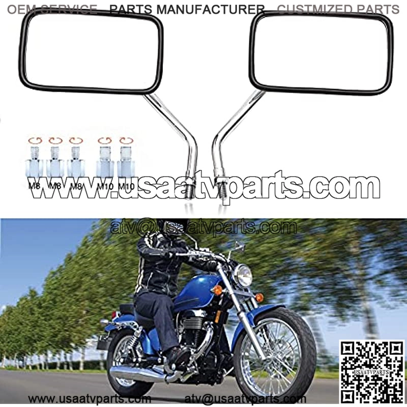 8mm 10mm M10 Motorcycle Side Mirrors, Rectangle Motorcycle Rearview Wing Mirrors Compatible With Bobber ATV Street Bike Cruiser Chopper