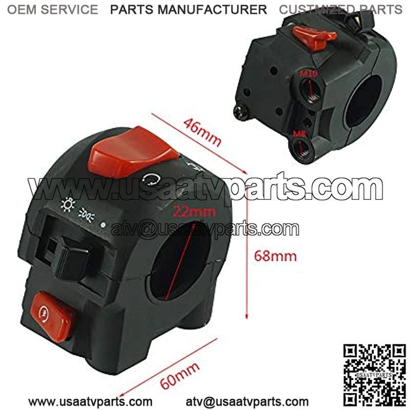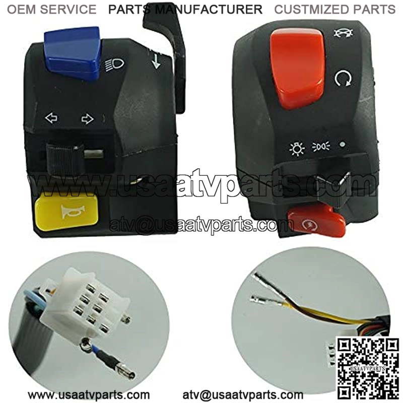 Function Integrated with Engine Stop Flameout switch, Electric start switch, Hazard Switch, headlight on/off switch, Turn Signal Light change-over switch, Horn,Low/High Beam Switch, Pass Switch