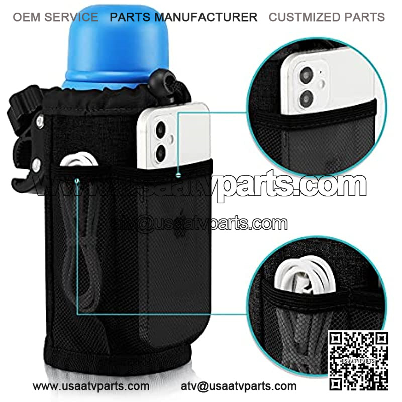 Multi-function design: Not just a bar cup holder! It is also ideal to hold bottle, wall charger etc. 2 Separated Mesh Pockets is designed for holding your phone, mp3, key, sunglasses, card fishing bait etc. Help you storage the little things.