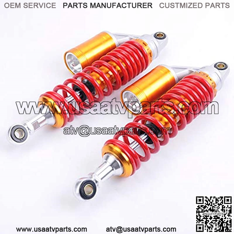 Air Gas Shock Absorbers 370mm 14.6 inches Round Ends Motorcycle Replacement Universal for Suzuki Kawasaki Yamaha Scooter Atv Quad Dirt Sport Bike Go Kart Red Golden