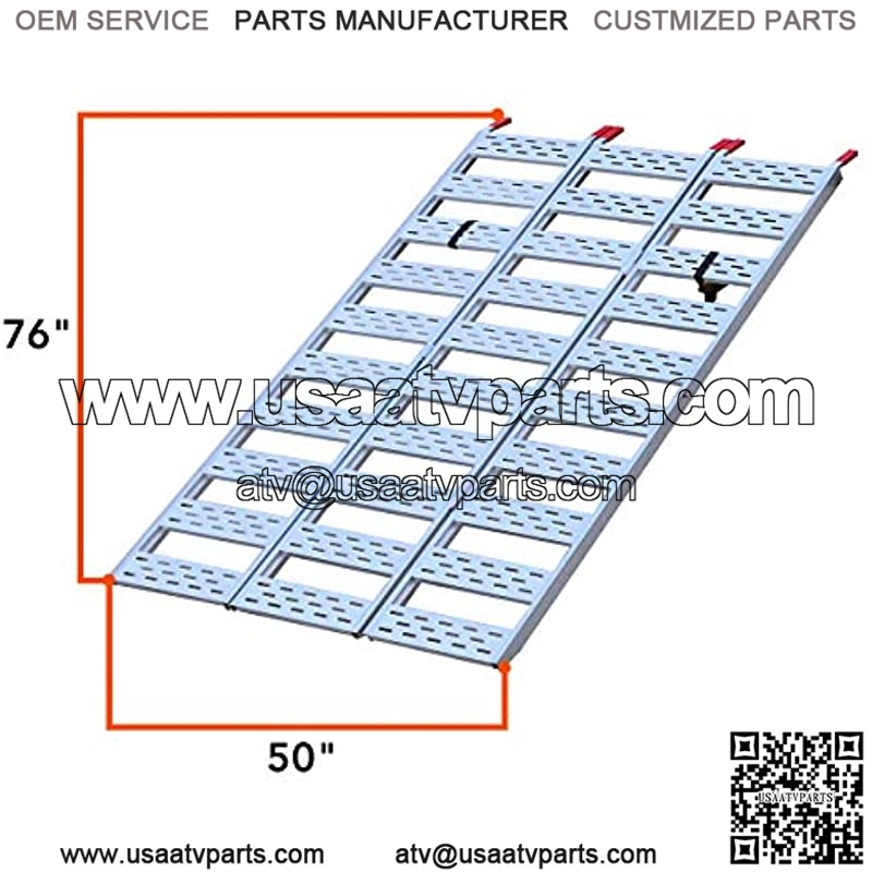RUSTPROOF: Built with strong and durable rustproof aluminum construction, this tri-fold ramp will last. 50?? W x 76?? L.