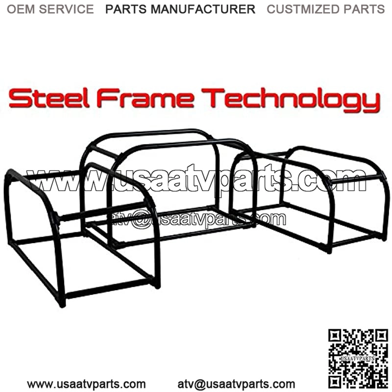 Equipped with a padded seat and backrest that is supported by the steel frame, (2) large arched side bags, (1) extra large back bag, (2) insulated during holders.
