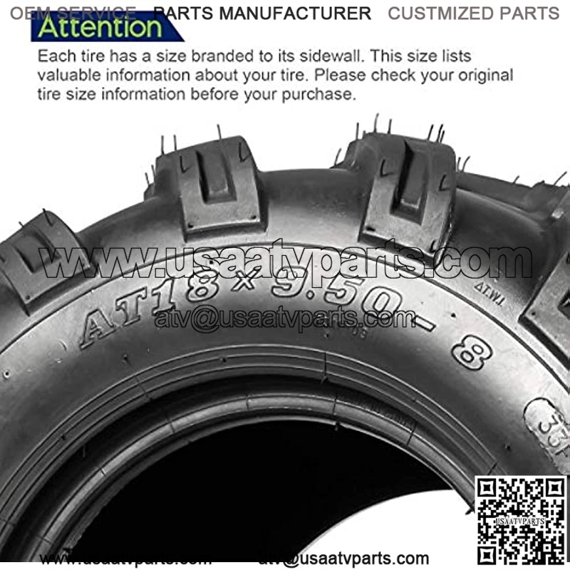Prior to purchase, please check the size of the original tire on your vehicle to ensure the size of the tire to be purchased is correct.Size:18×9.50-8 ATV Tire; Tread Depth: 15mm, Rim Width: 7.00″, SW (mm): 230, OD (mm): 457, Max Loads (lbs): 255, PSI: 10Tires only, rims are not included; Low profile design for controlled sliding and added comfort and stabilityWe ship your orders depending on their weight, when you make a single purchase of two or more tires, these tires will be packed in multiple packages which may not arrive at their destination at the same time.is a thriving brand which has been committed to meeting customers?? needs with its vast array of high-quality tires in the specialty market.Our lineup has been expanded to include the tires applied in Lawn & Garden, Agriculture, Golf Cart, ATV/UTV, ST Trailer, etc.Our Tires are compatible with your John Deere, Cub Cadet, Husqvarna, Kubota, Arctic Cat, Can-Am, Honda, Kawasaki, Polaris, Suzuki off-road vehicle and many more mode