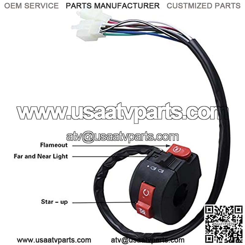 3 Functions:Starter, Off, Head light(hold the upper beam and lower eam)