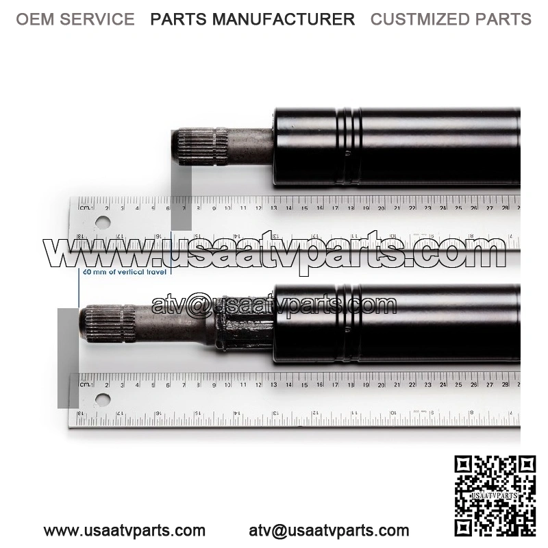 – With its inner CV joint designed like an outer joint, it can achieve a 45?? angle of operation (OEM axles can only operate up to around 23??). The telescoping shaft provides 60 mm of travel (twice what you get from an OEM axle).