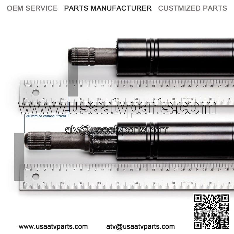 – With its inner CV joint designed like an outer joint, it can achieve a 45?? angle of operation (OEM axles can only operate up to around 23??). The telescoping shaft provides 60 mm of travel (twice what you get from an OEM axle).