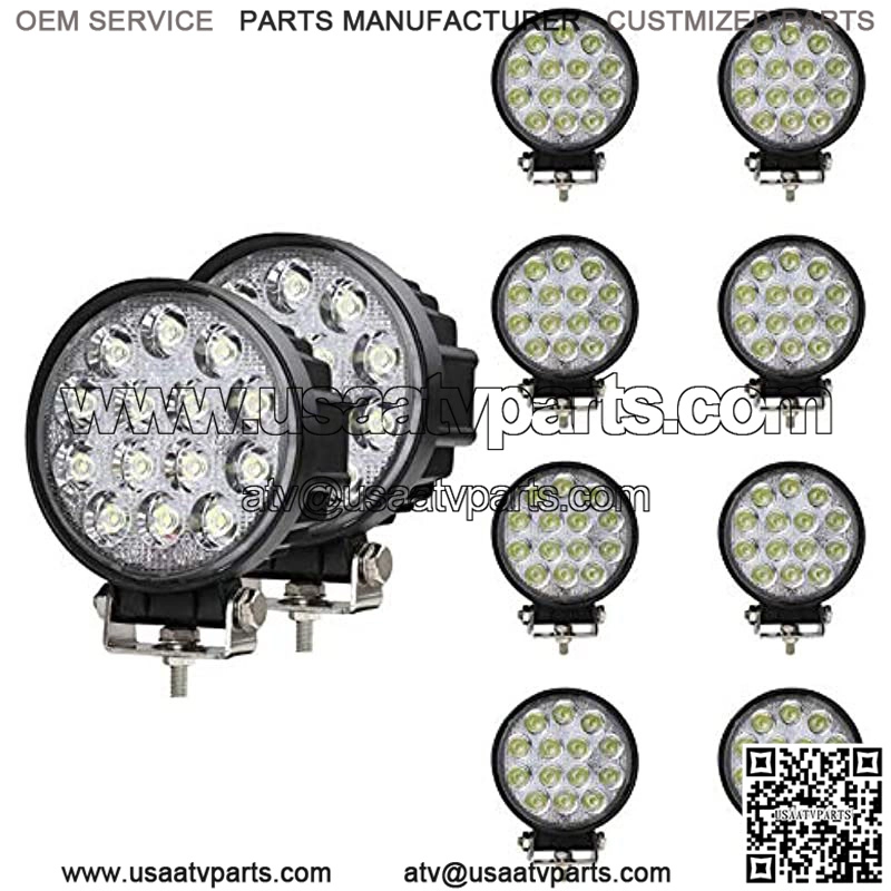 Barra de luz LED de trabajo, 10 piezas de 4.5 pulgadas, 42 W, luz de inundacin redonda para todoter, antiniebla, barra de techo, parachoques para ATV, UTV, SUV, camin, barco, tractor