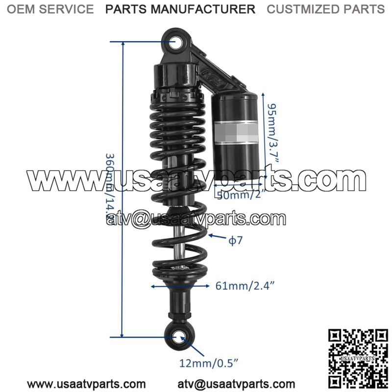 Black 360mm 14″ Rear Air Shock Absorbers Suspension ATV Motorcycle For Honda