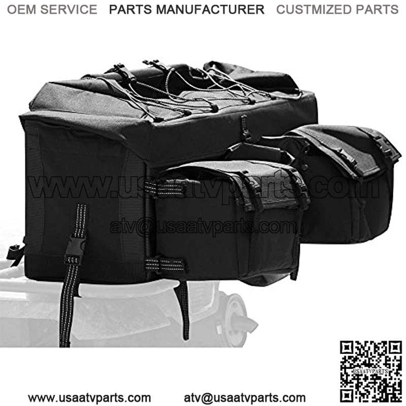 Black ATV Cargo Rear Rack Gear Bag with Topside Bungee Tie-Down Storage