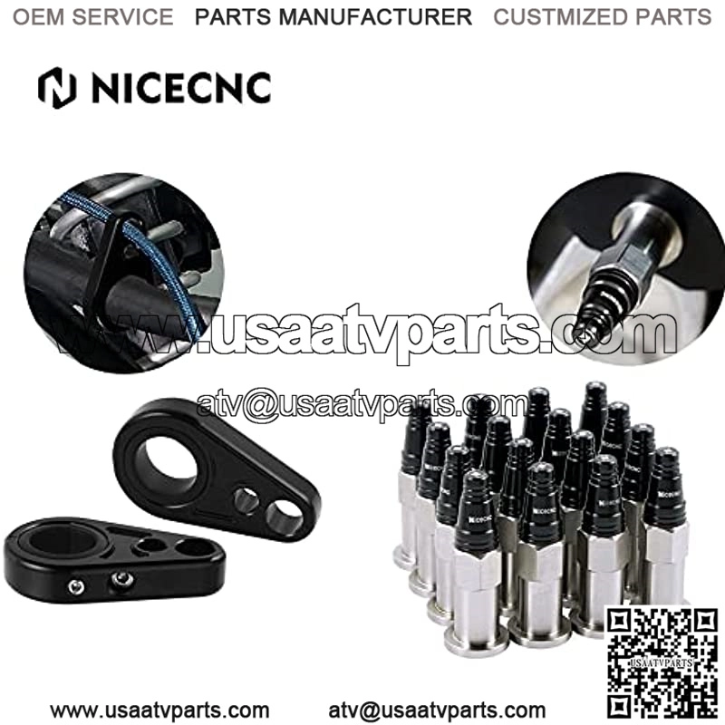 Black Billet Front Brake Line Clamps with 1″ or 3/4″ ATV A-Arms and 16pcs 10X1.25 Wheel Lug Nuts Universal for Most Models