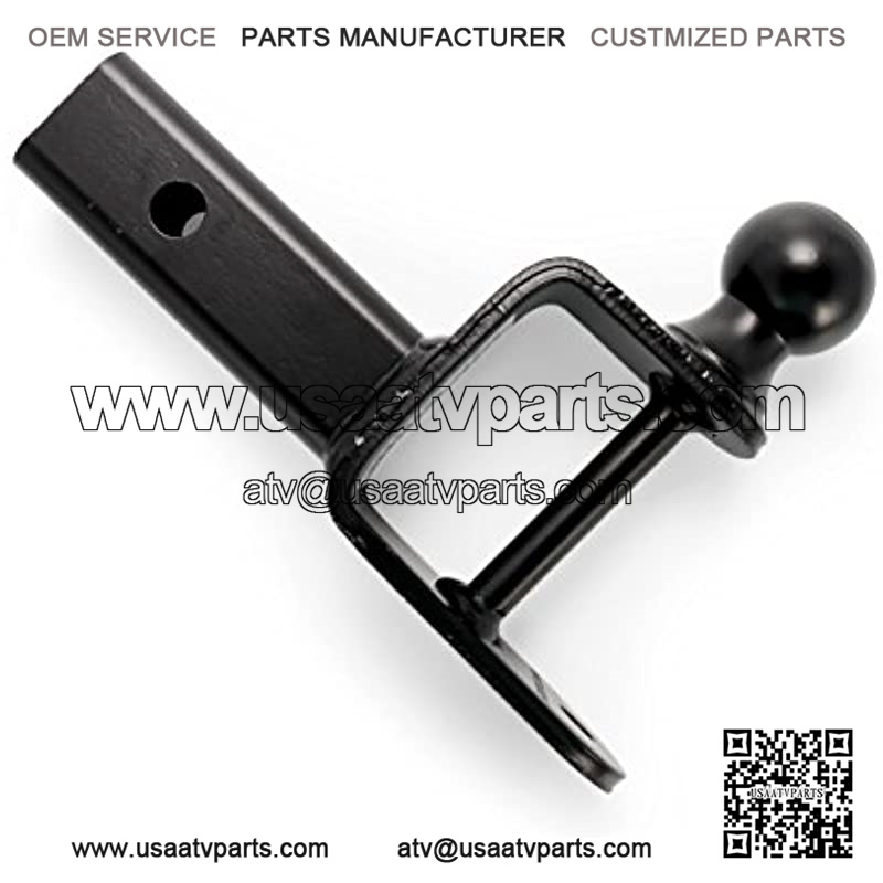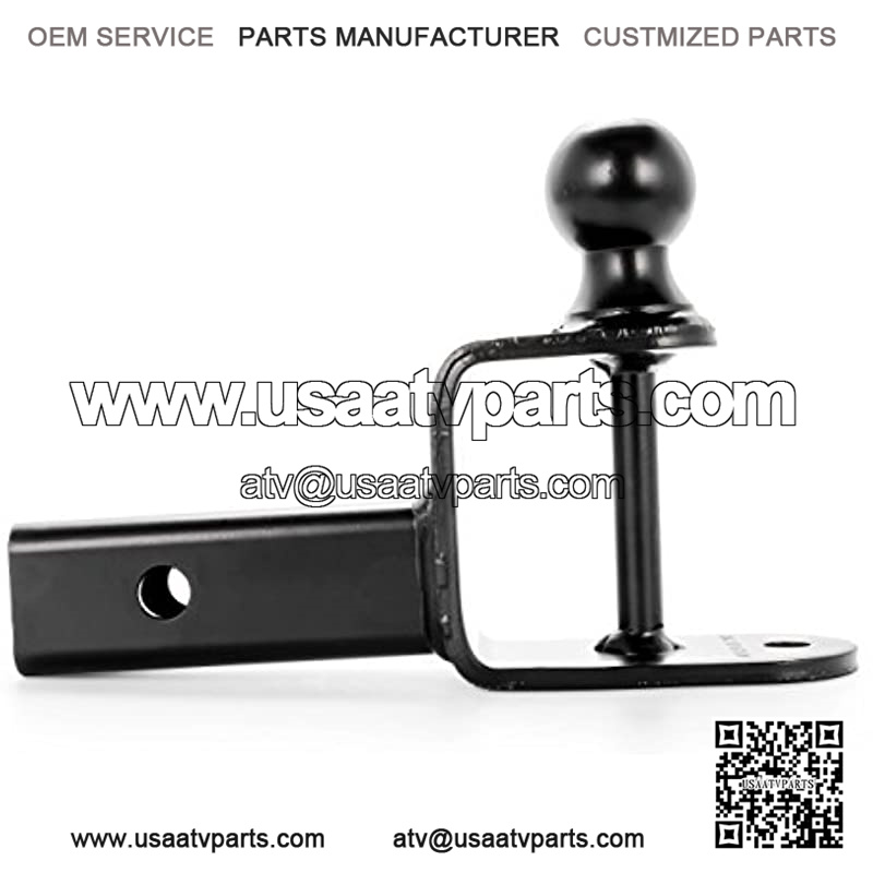 Easily mounts to your ATV or UTV hitch receiver to provide a hitch ball, winch strap loop and ?” pin hole for yard work equipment, utility trailers and other towable accessories