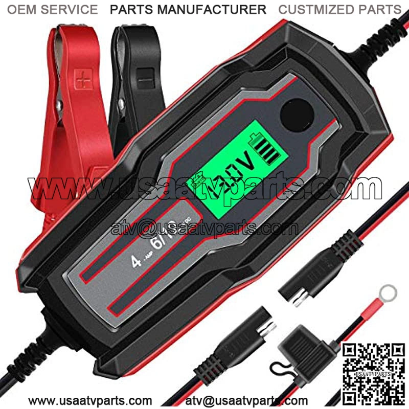 Car Battery r, 6V/12V 4 Amp Battery r Trickle r for Cars, Trucks Motorcycle Lawn Mower Boat Marine RV SUV ATV SLA Wet AGM Gel Cell Lead Acid Lithium Battery